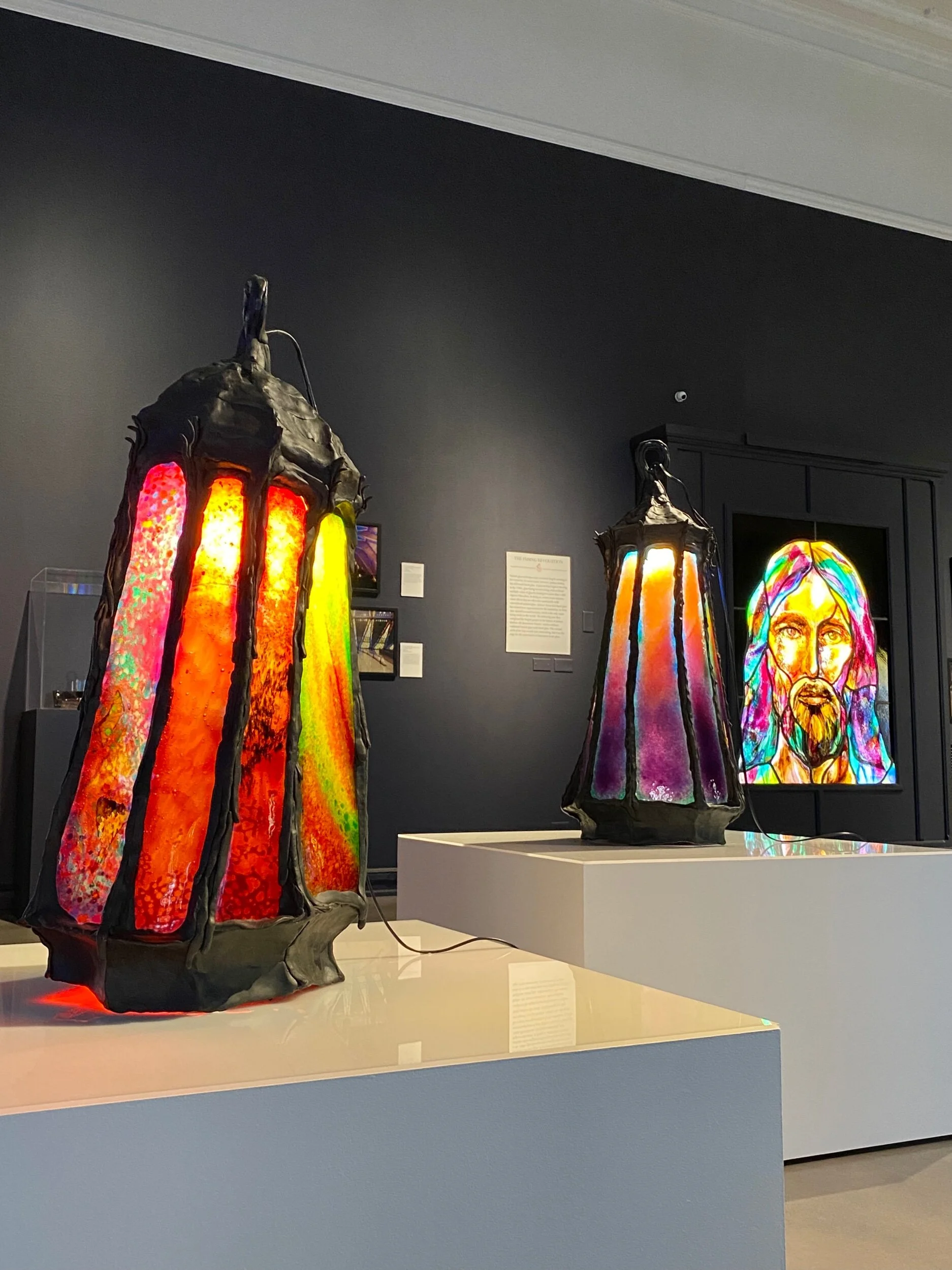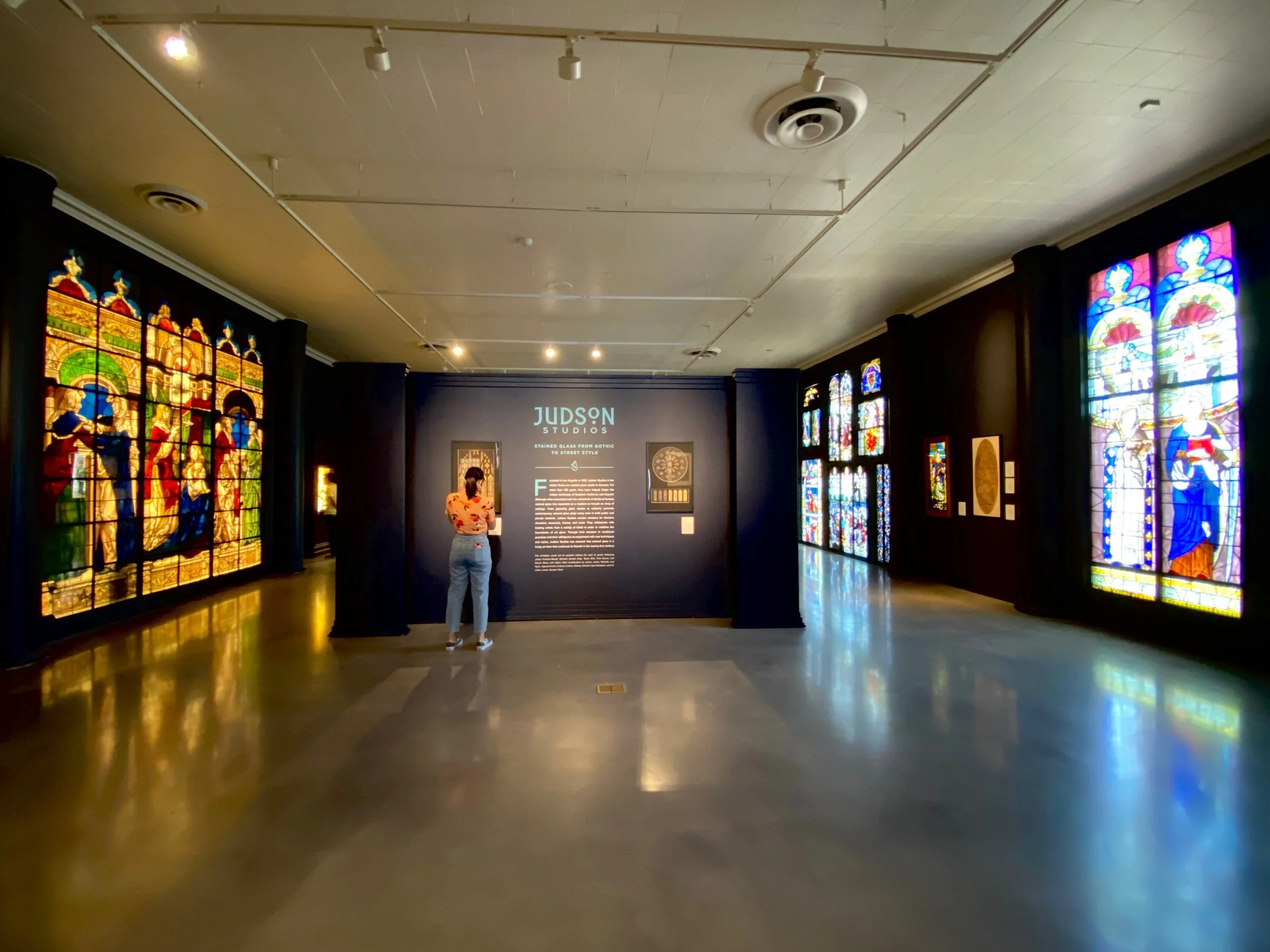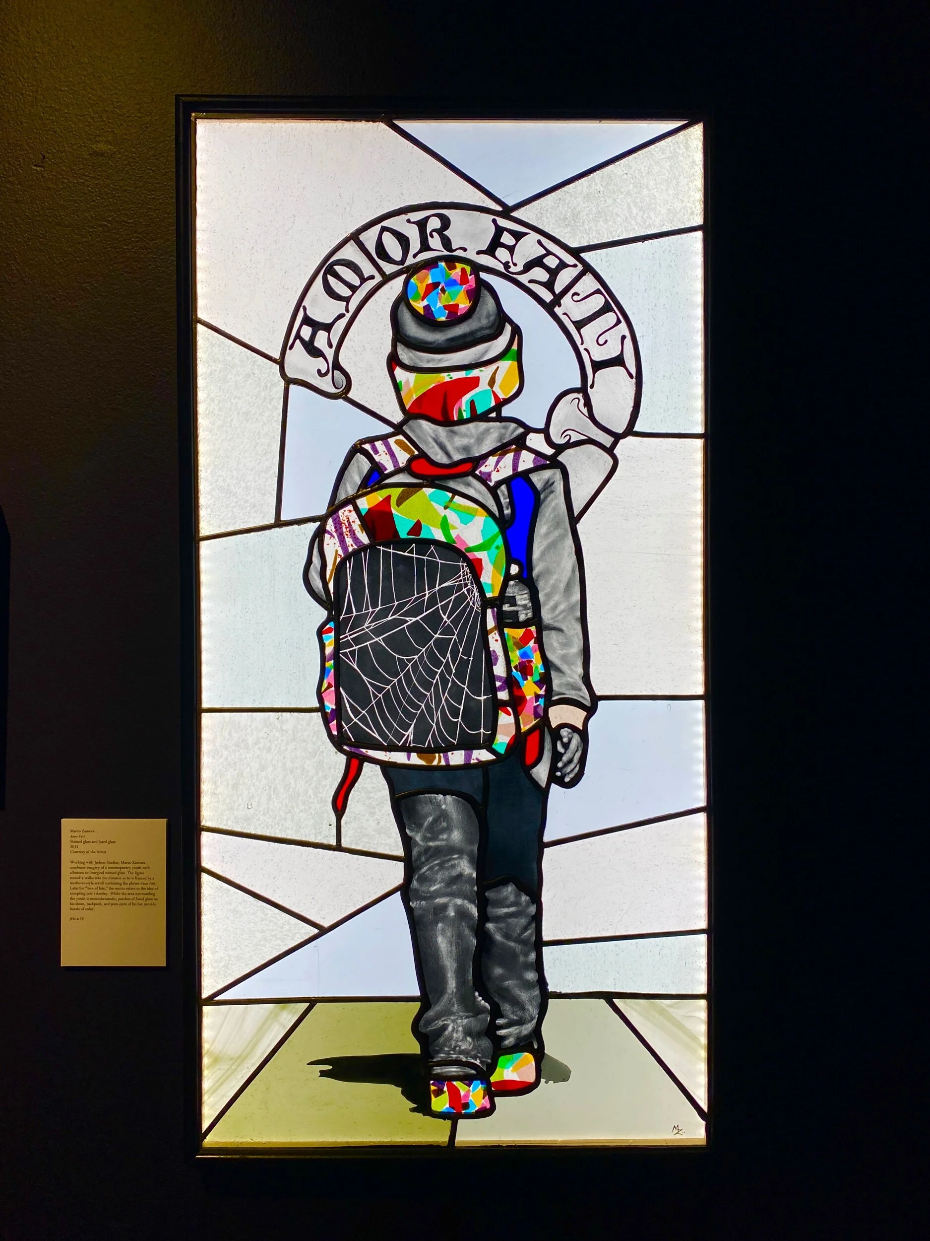 The Judson Studio exhibit is entitled: Stained Glass From Gothic to Street Style. It’s the perfect description since, if you’re anything like me, you probably only thought of stained glass as a church-related aesthetic. But this art form can extend to a wide array of settings. Ever evolving, Judson Studios’ goal for innovation has seen their work applied to modern art, home decor, furniture, and countless commercial projects. Part of the exhibition even features collaborations with urban artists such as Marco Zamora, El Mac, and David Flores. The exhibit even unintentionally extends next-door to the Hall of the Crucifixion-Resurrection since the stained glass windows located within were created by, you guessed it, Judson Studios. The exhibit is a rare combination of serenity and exhilaration and needs to be experienced in person to fully appreciate. I hope you take the opportunity to visit while it’s still on display.