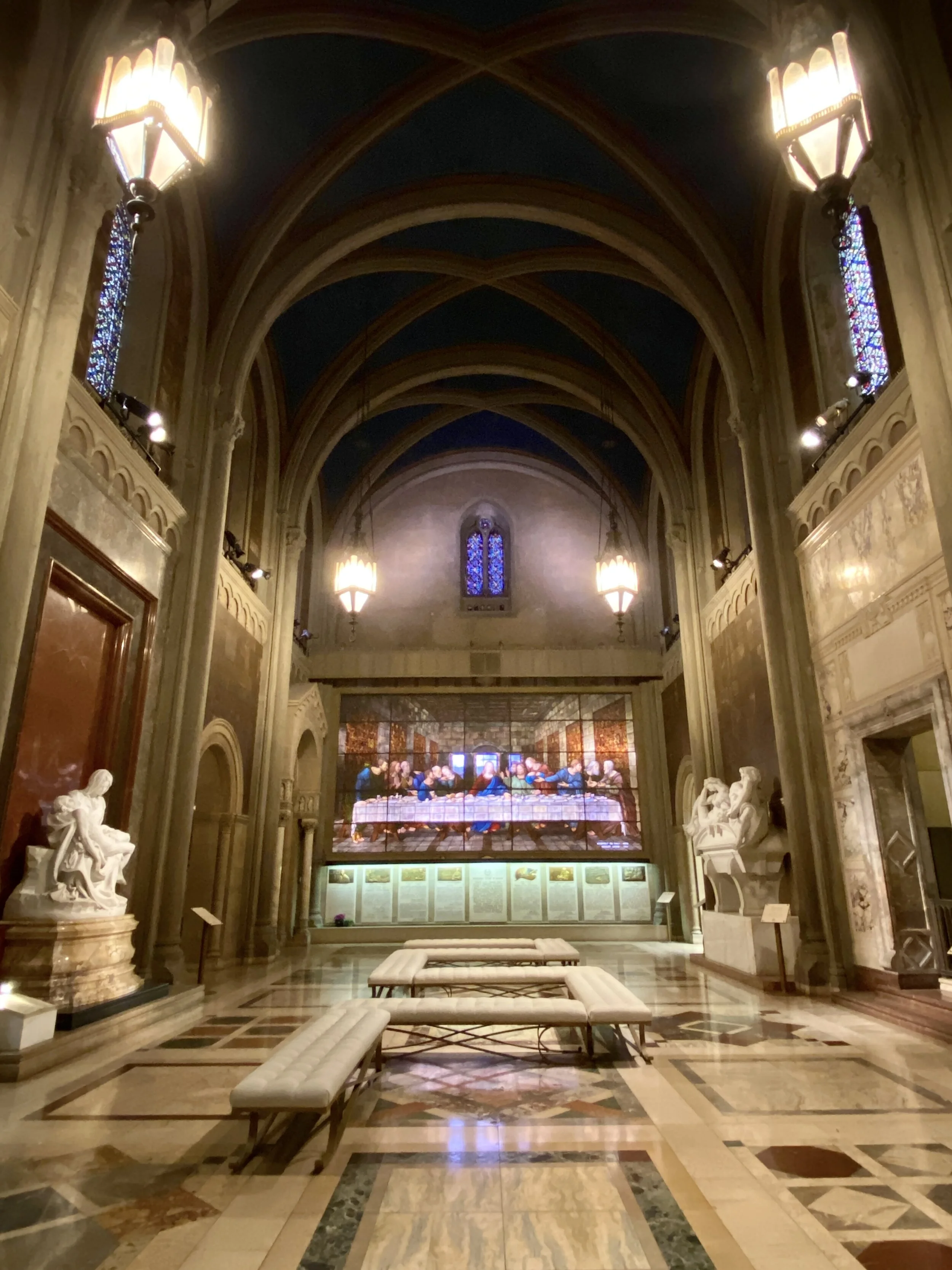 Founded in 1897, Judson Studios is the oldest family-run stained glass studio in the United States and one of the preeminent producers in the world of this awe-inspiring medium. Located in the Highland Park area of Los Angeles, if you’ve seen a piece of stained glass artwork in Southern California, there’s a pretty good chance it was made at Judson Studios. Highlights of their master craftsmanship include the Church of the Resurrection in Kansas, numerous Frank Lloyd Wright works like The Ennis House, on the campus of USC, and the Cadet Chapel at the US Air Force Academy. With a portfolio that spans around the globe, to see them all would be a daunting task. Thankfully, you can view a retrospective of Judson Studios’ work and history at the Forest Lawn Museum in Glendale thru September 12th, 2021. If you’re familiar with Forest Lawn, you know that it’s one of the major cemeteries in Southern California. I know, I know, a cemetery is the last place you’d expect to host a major art exhibition, but it has a long tradition of priding itself as a point of interest for the living as well. More on that later.