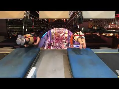 The Zoomline is 114 feet high and you ride it “superman-style” underneath the entire length of the Fremont Street canopy (1,700 feet long).
